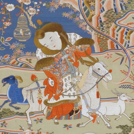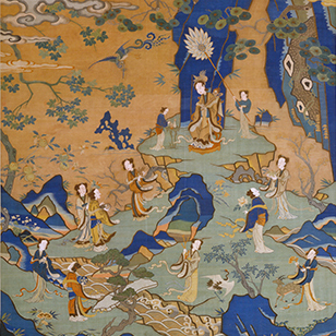 中国古代缂丝工艺的出现至迟不晚于7世纪,但缂丝真正在艺术领域登堂入室乃始于北宋末年,受宫廷院画的影响,缂丝开始以摹缂名人书画为能事,“夺丹青之妙、分翰墨之长”,甚或造及“胜于原作”的境界。历经元、明两代,皆有精品传世,至清代乾隆朝,随着天下的富庶繁盛,缂丝艺术的发展继而登上了宋以后的又一高峰。当时缂丝艺术品大量织造,并被收进皇家的书画著录,举凡花鸟草虫、山水风景、人物故事、吉祥图案、诗文法书及佛像梵经,无不精细华美。