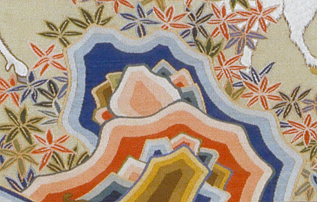 缂丝是丝织工艺的一种,又称“刻丝”、“克丝”等,以“通经回纬”为基本技法,即以本色丝作经,各色彩丝作纬,根据纹样的轮廓或色彩的变化采用不断换梭和局部回纬的方法织制图案。